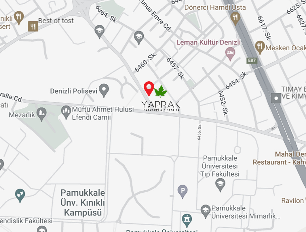 Yaprak Fotokopi Kırtasiye 2004 yılında Denizli İncilipınar Mahallesi eski Pamukkale Üniversitesi Eğitim Fakültesi girişinde küçük bir iş yeri olarak 2 adet fotokopi makinesiyle siz değerli müşterilerimizin fotokopi ihtiyacını karşılamak üzere açılmıştır. Daha sonra müşterilerimizin istek ve taleplerine göre getirdiğimiz bazı kırtasiye malzemelerini satışa sunduk. Yaklaşık 4 sene sonra iş yerimizin küçüklüğü ve Pamukkale Üniversitesi Eğitim Fakültesi'nin Kınıklı Kampüsü'ne taşınması sonucu, bizde işyerimizi eski iş yerimize oranla çok daha geniş ve Kınıklı Kampüsü ana girişine en yakın noktada bulunan bir dükkâna taşıdık. Yeni dükkânımıza taşınmamızla birlikte siz değerli müşterilerimizden gelen talepler doğrultusunda makinelerimizi yenileyerek çağımıza uygun profesyonel makine sayımızı arttırdık.